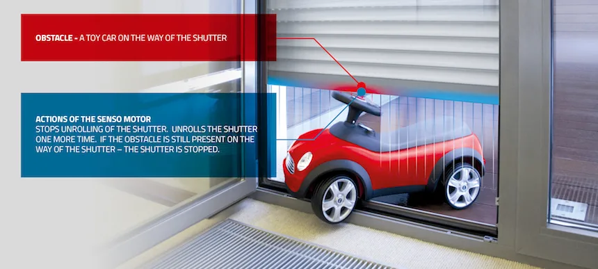 - completely safe time automatics, lack of supervision over roller blinds operations does not cause any failures thanks to the obstacles detection system, insensitive to minor shutter curtain distortions.